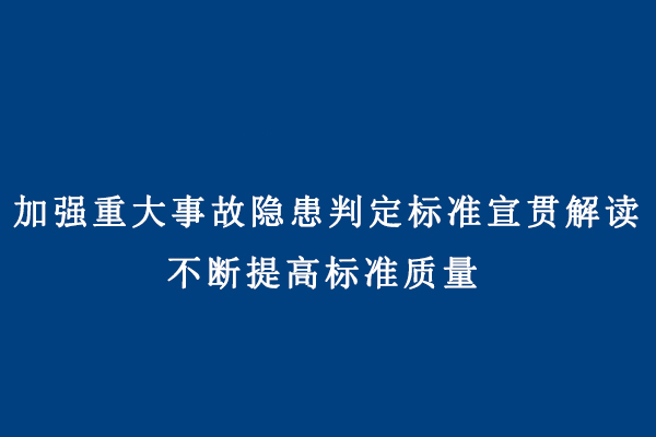 加强重大事故隐患判定标准宣贯解读,不断提高标准质量