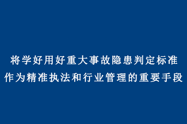 将学好用好重大事故隐患判定标准作为精准执法和行业管理的重要手段