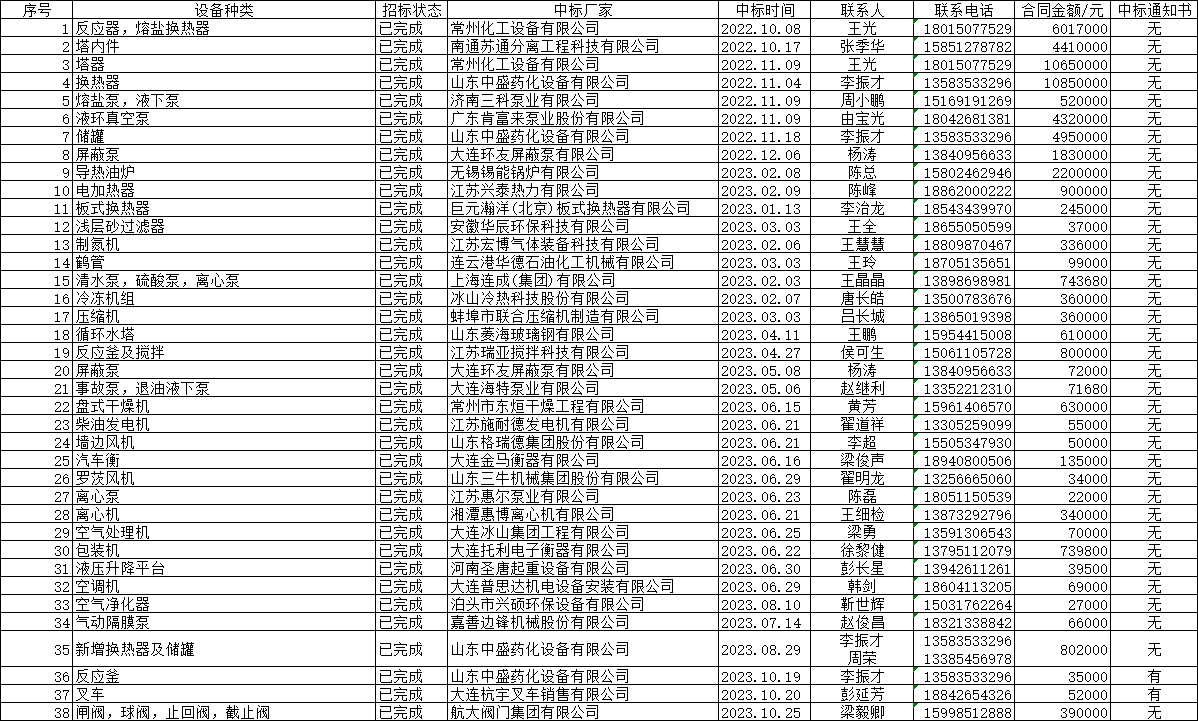大连中沐特种高分子材料有限公司设备类采购招标