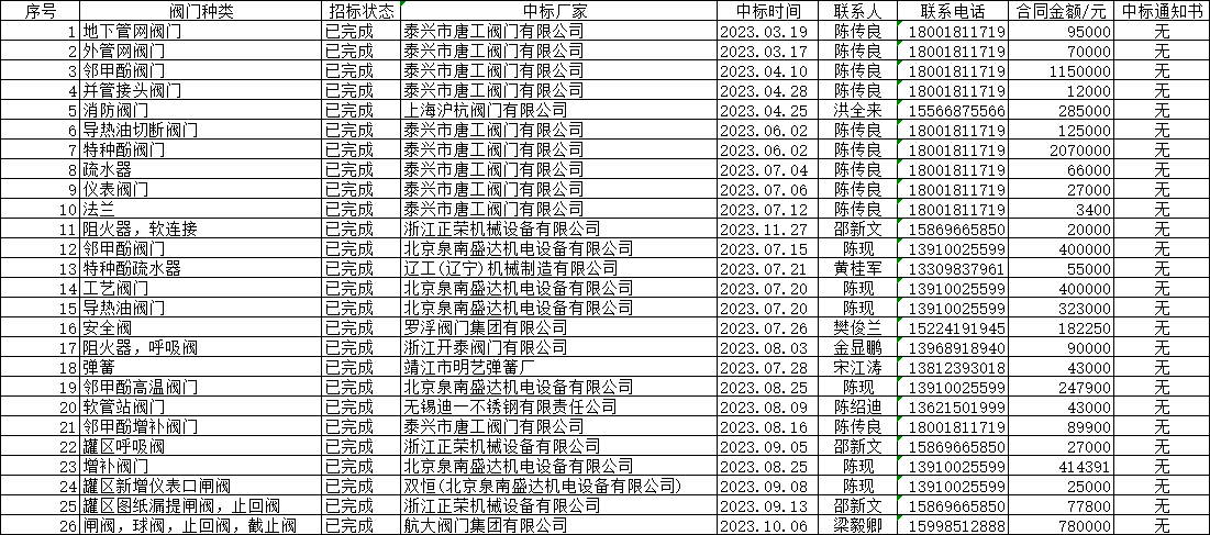 大连中沐特种高分子材料有限公司阀门类采购招标